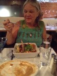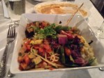 There is a vegetarian special all the time which revolves around sessional ingredients, so mine were very different from each other since the seasons had changed. I think mine was the best bargain because it was so plentiful it came home and became a beautiful pasta salad to eat today. Bob enjoyed his fish dish very much, reporting that it was fresh and perfectly prepared. We both had really cute yucca strips as garnish on top of our entrees. Our portobello mushroom appetizer course filled us significantly because it was accompanied by warm french bread and a sauce that made us want to lick the plate. It was made with mostly red peppers, I think. When we asked for more bread the very accommodating server brought extra sauce as well. Service was very well executed, which we remembered from our fist time. You feel that your server is paying close attention to timing and making sure your needs are met without being intrusive. In fact the whole operation suits us because attention is placed on high quality and good service instead of high overhead for the facility. The bar is cozy and the kitchen open for viewing. We like the local art work that includes portraits of stars of the horror genre. The Wild Garlic Grill is a comfortable and delicious place to spend a happy hour, a brunch, or a dinner. We will return often since it is close to home, and recommend it to anyone looking for a special individual dining experience.