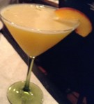 We dined at the Wild Garlic Grill for the second time yesterday and vowed to go more frequently because it suits us perfectly. The first time we ate there was on Easter when we were looking for something new and different. Both times we have ordered from the daily special menu and have been mighty impressed with the cuisine. The chef is skilled in creating contrasts with flavor, temperature, and surprise ingredients. We remembered the cocktails because they are inventive and made with fresh ingredients. Bob likes beer so he enjoyed a nut brown ale from a local brewery while I tried the fuzzy tini, a peach martini cocktail.