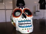 All Souls Day in the Catholic tradition is a time to honor and remember the dead. In native belief systems of the Americas death played a central part. Making fun of death, or mocking the fanciest parts of life have gone together forever, everywhere. In Basel Switzerland I saw a collection of art from the middle ages portraying the same dancing skeletons used in Mexico to show death as a fiesta. Being mindful of mortality is known as memento mori. Skulls and other reminders of the transience of life were used in churches and religious settings. Ancestors graves have been a place of reverence for almost all peoples. Art depicting death in a whimsical or dramatic way has been with us in many cultures around the world. To remember mortality is essential to living a full life.
